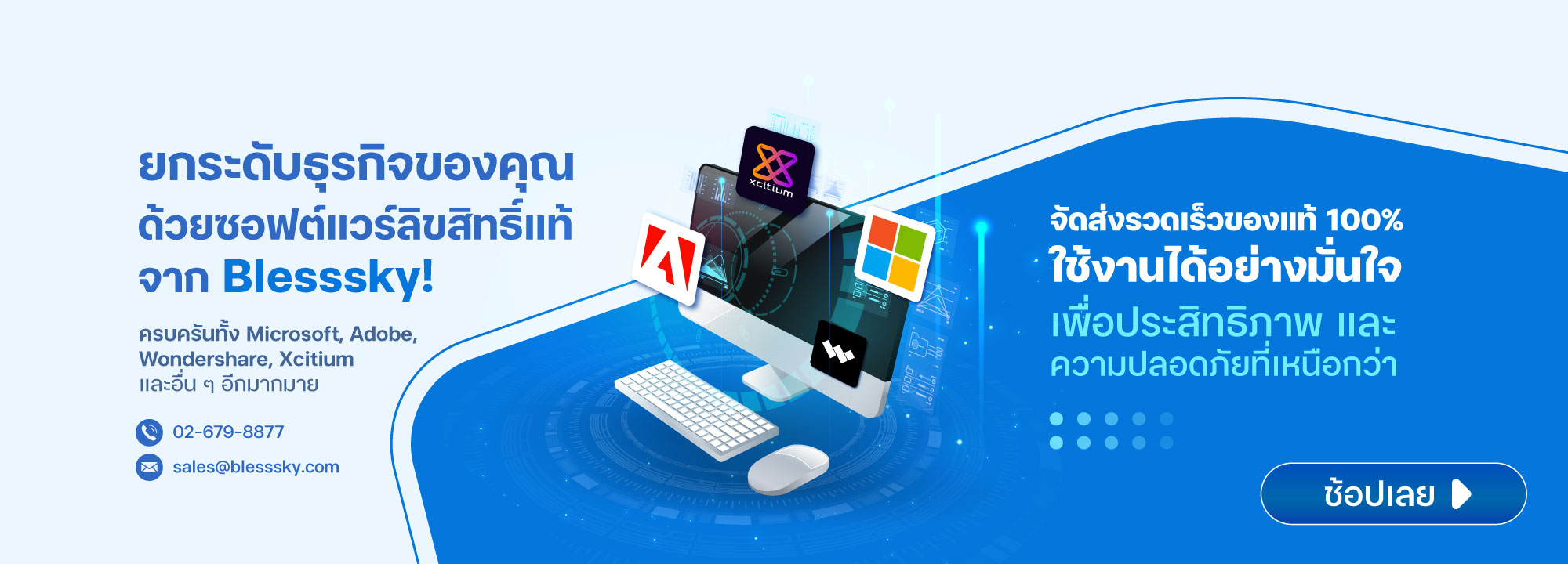สำหรับลูกค้าองค์กรหรือหน่วยงานราชการที่มีความประสงค์สั่งซื้อสินค้า หรือต้องการสอบถามรายละเอียดเกี่ยวกับบริการด้าน IT ของ Blesssky Connexion เราพร้อมให้คำแนะนำและข้อมูลเพิ่มเติม